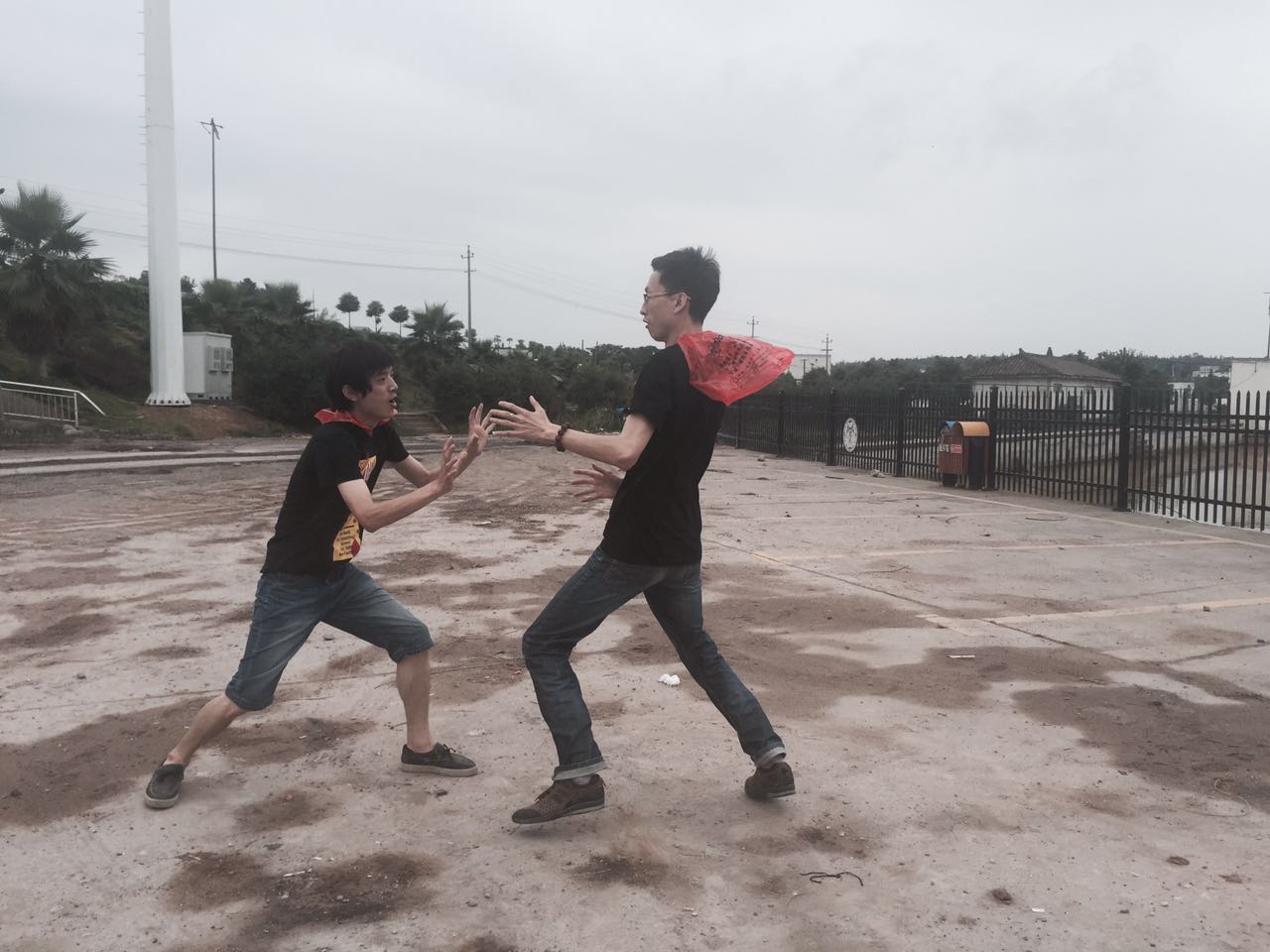 現(xiàn)在是兩大高手,果然穿著黑衣服的都是“大黑?!?!在幾輪的PK下,高個子發(fā)揮了絕對優(yōu)勢。勝率很高~大家大汗淋漓!也有幾個圍觀群眾在邊上看,瞬間覺得自己變成了明星。