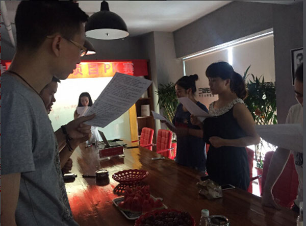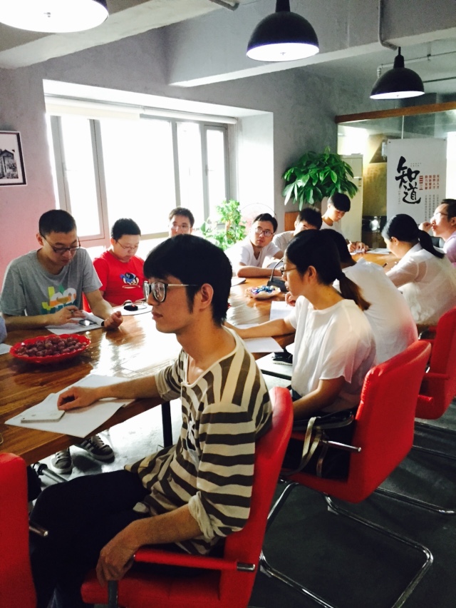 八點半,在我們讀完每日必讀的“能量詞”之后,我們就開始了內(nèi)部討論。