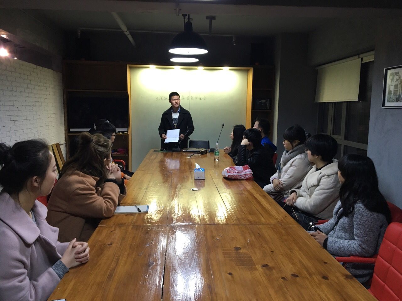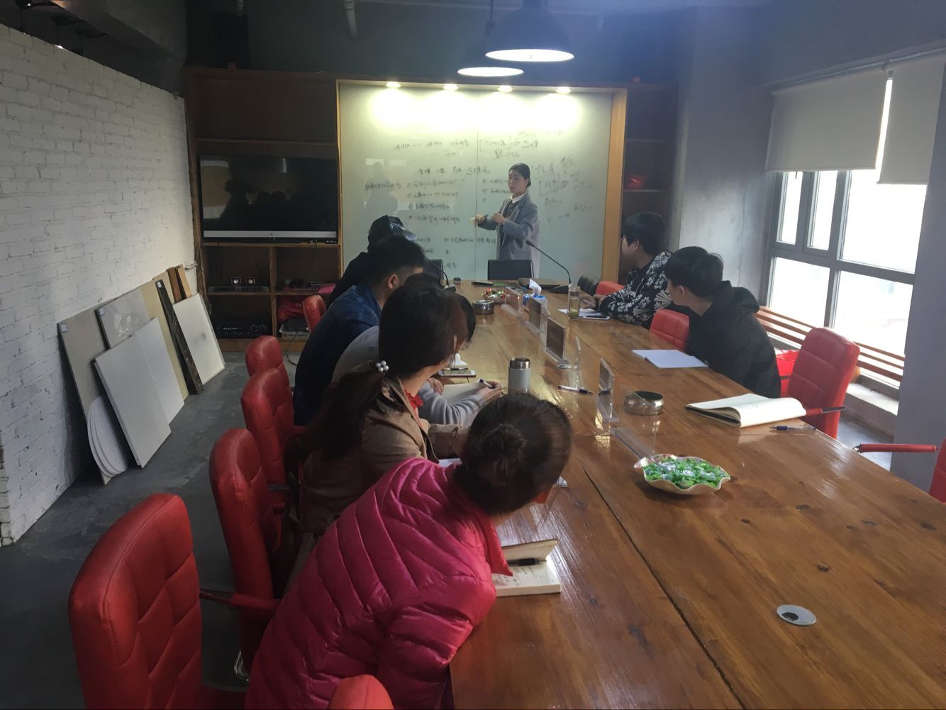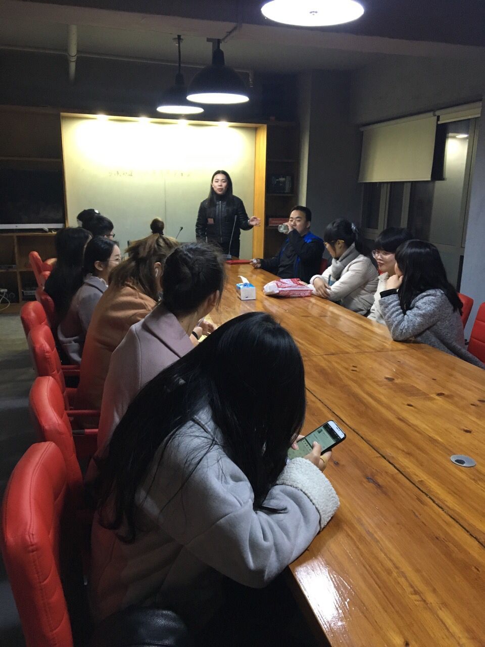 首先是新來的員工的自我介紹,來自湖北的追夢女生。在彼此大概了解下,慢慢熟絡(luò)起來。