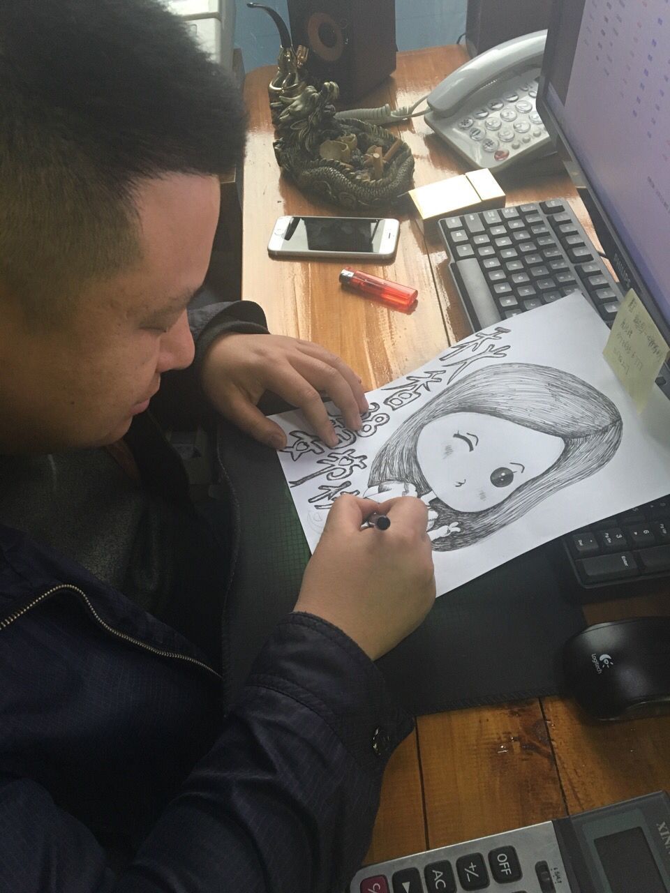 總監(jiān)峰哥的素描,還特意自己抽出午休時間買了個素描本。