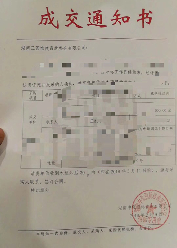 株洲廣告公司三圓惟度中標(biāo)通知書